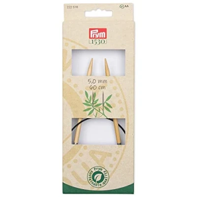 Made from eco-friendly, lightweight and sustainable bamboo Very comfortably in the hands Tapered tips make it very easy to knit your stitches Smoothly polished surface 1 x Prym - Prym 1530 Bamboo Circular (60cm, 5.00mm) Needle - 5 Pieces