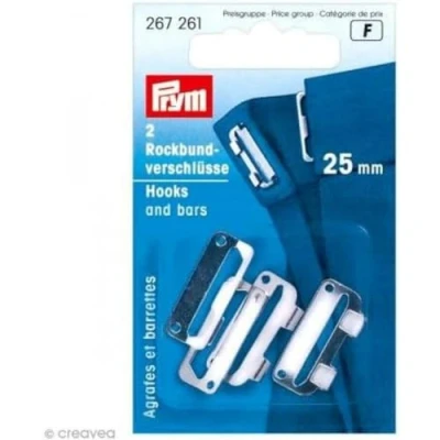 For securing skirt waistbands Pleasant to the touch because of their smooth surface Sew on holes make it easy to attach them Made of high-quality, rust-proof metal 1 x Prym - Prym Steel Silver (25mm) Skirt Hooks - 1 Unit