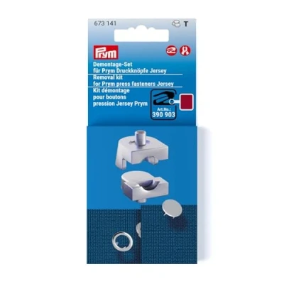 Tool for removing Prym press fasteners Jersey, 8 and 10 mm Set with 2 attachments Accessories for the Vario Creative Tool (390 903), can also be used with VARIO pliers (390 900) Blackberry-colored marking for easy identification Press fasteners Jersey available separately (e.g. Art. No. 390 100)