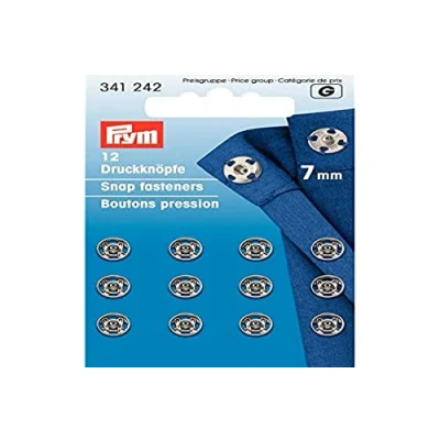 Prym Sew On Snap Fasteners Brass Silver col, 341252 17 Mm