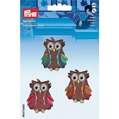 Owl embroidered motifs Multicoloured "Exclusive Designs" self-adhesive iron-on motifs for fabrics