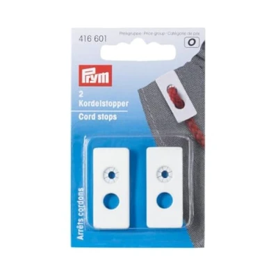 Prym 2-hole cord stops Durable plastic material Comes in Black and White