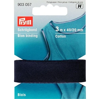 Prym Cotton Bias Binding Tape Marine, 100% CO, Navy, 20 mm Falzung: 40/20 3 m