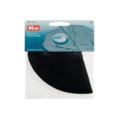 Absorbent dress shields Prevent staining from underarm sweat Provide 100% cotton dress shields Washed at up to 60 degrees 1 x Prym - Prym Cotton Black (Size L) Dress Shields - 2 Pieces