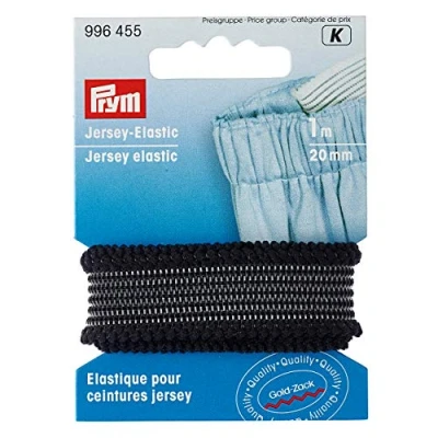 Soft elastic tape for trouser cuffs and skirt hems Suitable for light stretchy fabrics Washable up to 60 degrees Suitable for tumble drying 1 x Prym - Prym Jersey Black (20mm, 1m) Elastic - 1 Unit