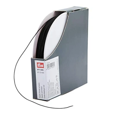 Elastic rubber cord for hats, masks, waistbands and much more. The matching elastic band for jewellery making (jewellery rubber, bracelet rubber) or other crafts Dimensions: diameter 1.5 mm, length 100 m Washable up to 40 °C, tumble dryer-safe