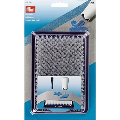 Work pad for needle felting Blue plastic base with white bristles Perfect for both compacting the felt, as well as working in the felt Offer the right resistance and protection for work with felting needles 1 x Prym (8 x 18cm) Felting Mat - 1 Unit