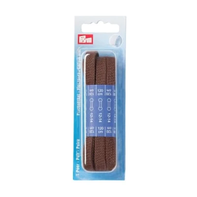 Hard-wearing, sturdy shoelaces Made from 100% cotton Replace the laces on a pair of running shoes Suitable for consistent lacing 1 x Prym - Prym Brown (0.8 x 120cm) Flat Laces - 1 Unit