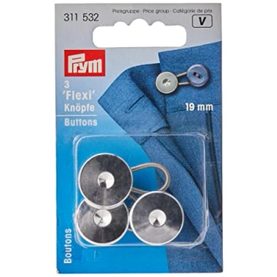 AmazonFlexible buttons with spring steel loop For expanding waist and collar size Made of metal Conveniently closed with the button hole 1 x Prym - Prym Silver (19mm) Flexi Buttons with Loop - 3 Pieces