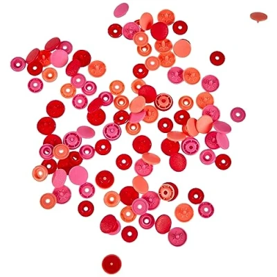 Colour assorted press fasteners for baby’s and children's clothing Easy fastening strength Washing, spinning, cleaning, ironing or pressing is all possible The fasteners are made of plastic 1 x Prym Love Red (12.4mm) Press Fasteners - 1 Unit