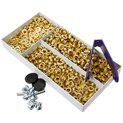 Eyelets with washers for clothing, handicrafts or hobbies Includes tools for easy application Made from stainless brass Gold coloured 1 x Prym Gold (5mm) Eyelets and Washers - 1 Unit