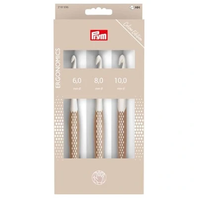 Prym Prym.ergonomics 218596 Wool Crochet Hook Set, Taupe, 6/8/10 mm