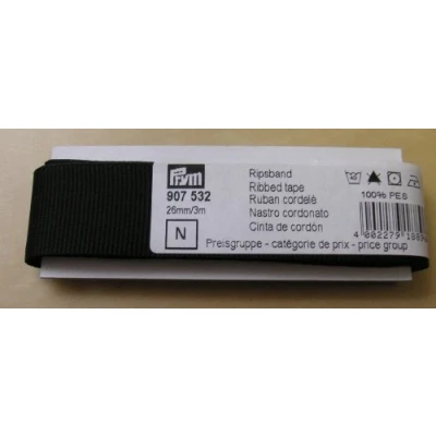 Prym Ribbed Tape Black, 26 mm, Schwarz, 3 m