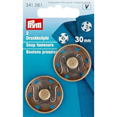 Amazon MarketplaceIdeal for fastening clothes and accessories Made of brass Flanged ball part with fixing hole Fabric is protected from sharp edges 1 x Prym - Prym Antique Brass (30mm) Sew-On Snap Fasteners - 1 Unit