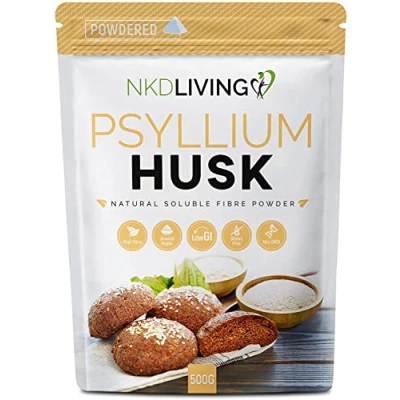 Psyllium husk powder Natural soluble fibre (89%) Finely ground into a powder so can be conveniently added to drinks Easily mixes with food. Premium quality, each batch is tested in the UK