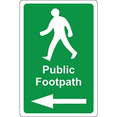 Public footpath arrow left directional sign 1.2mm Rigid plastic 300mm x 200mm Digitally printed for extra durability Drill and screw in position or use double sided tape to mount onto suitable surface.