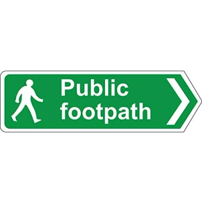 Public footpath right directional sign 3mm Aluminium sign 330mm x 100mm Digitally printed and laminated for extra durability 10mm Radius rounded corners, no sharp edges