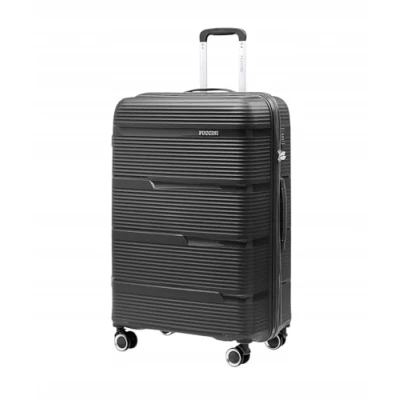 PUCCINI Casablanca Large Suitcase - Ideal for longer trips and family vacations, perfect as check-in luggage. Elegant design with stylish grooves for a modern and timeless look Dimensions: 75 x 51 x 30 cm, weight: 4.3 kg, volume: 100 litres. The dimensions also include the outer parts of the case, such as wheels and handles Durable polypropylene plastic (PP) - lightweight, elastic and shockproof, reliably protects the contents of the suitcase even during frequent travel THOUGHTFUL INTERIOR FOR PERFECT ORGANIZATION - Two practical compartments: main compartment with mesh pocket and zipper and second compartment with elastic packing straps. A combination lock increases the security of the contents TRAVEL COMFORT - Four double 360° swivel castors ensure easy maneuvering, telescopic handle and top carry handle make transportation easy