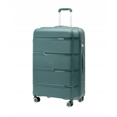 PUCCINI Casablanca Large Suitcase - Ideal for longer trips and family vacations, perfect as check-in luggage. Elegant design with stylish grooves for a modern and timeless look Dimensions: 75 x 51 x 30 cm, weight: 4.3 kg, volume: 100 litres. The dimensions also include the outer parts of the case, such as wheels and handles Durable polypropylene plastic (PP) - lightweight, elastic and shockproof, reliably protects the contents of the suitcase even during frequent travel THOUGHTFUL INTERIOR FOR PERFECT ORGANIZATION - Two practical compartments: main compartment with mesh pocket and zipper and second compartment with elastic packing straps. A combination lock increases the security of the contents TRAVEL COMFORT - Four double 360° swivel castors ensure easy maneuvering, telescopic handle and top carry handle make transportation easy