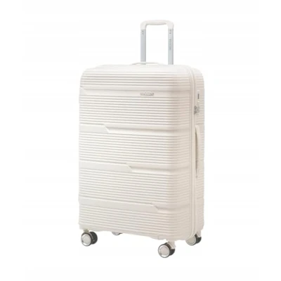 PUCCINI Casablanca Large Suitcase - Ideal for longer trips and family vacations, perfect as check-in luggage. Elegant design with stylish grooves for a modern and timeless look Dimensions: 75 x 51 x 30 cm, weight: 4.3 kg, volume: 100 litres. The dimensions also include the outer parts of the case, such as wheels and handles Durable polypropylene plastic (PP) - lightweight, elastic and shockproof, reliably protects the contents of the suitcase even during frequent travel THOUGHTFUL INTERIOR FOR PERFECT ORGANIZATION - Two practical compartments: main compartment with mesh pocket and zipper and second compartment with elastic packing straps. A combination lock increases the security of the contents TRAVEL COMFORT - Four double 360° swivel castors ensure easy maneuvering, telescopic handle and top carry handle make transportation easy