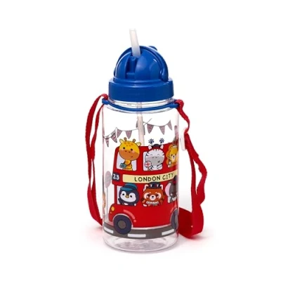 Puckator 450ml Children's Shatterproof Water Bottle Adoramals London Reusable Insulated Active Flask For Girls And Boys With A Carry Handle & Straw Bpa Free School Nursery