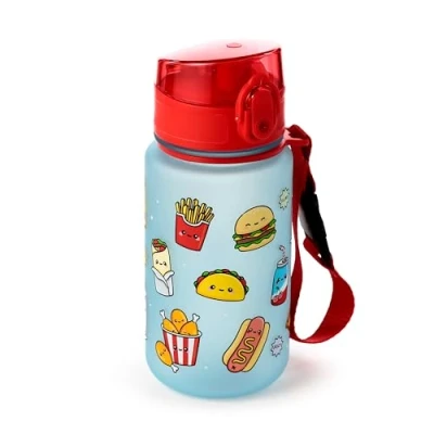 Puckator Foodiemals Pop Top 350ml Shatterproof Children's Bottle Reusable Insulated Active Water Flask For Girls And Boys With A Carry Handle & Straw Bpa Free School Nursery