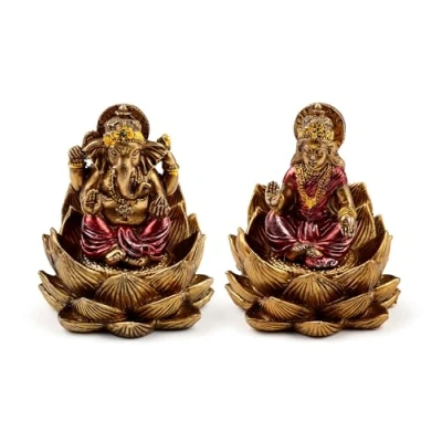 Puckator Gold Ganesh & Lakshmi Lotus Set of 2 Ganesha Idol Statue Statues For Home Decor Ganapati Ganpati Indian Decoration Decorations Hindu Gift Gifts Items Women