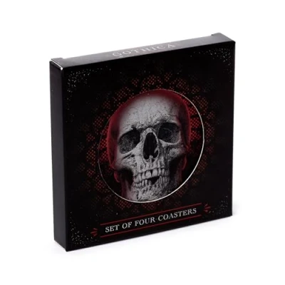 Puckator Gothica Set of 4 Cork Coasters Wood Table Pub Drink Tiles Placemats Bar Accessories For Home Desk Coaster Tile Slate Dining Decor Drinks Mats Man Cave