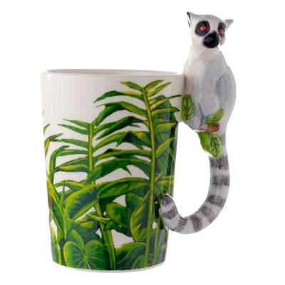 Puckator Lemur with Jungle Decal Ceramic Shaped Handle Tea Coffee Mug Funny Home Accessories Cute Gifts for Girlfriend Large Mugs Men Women Hot Drinks Cups Presents Secret Santa Gift Cup Set