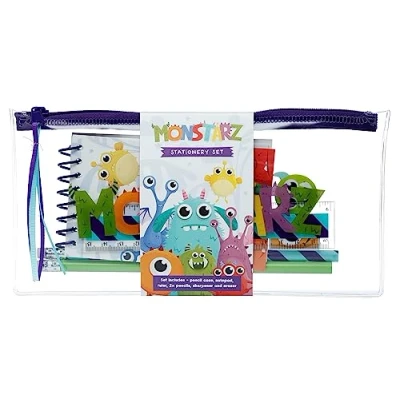 👹 Monster Themed Comes In A Transparent Pencil Case Has Everything You Need, Pencils, Eraser, Ruler, Sharpener, Notebook ✔️ Made out of High Quality Materials Designed in the UK
