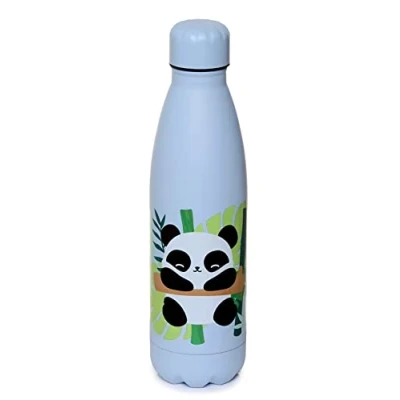 Puckator Reusable Pandarama Panda Insulated Hot & Cold Drinks Bottle, Leakproof Thermal Travel Flask, 500ml, Stainless Steel Double Walled, BPA Free PVC, Cool for 24 Hours Warm 12
