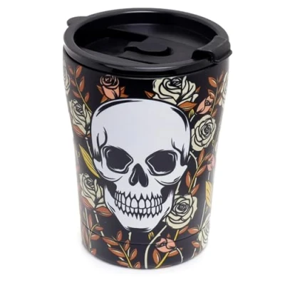 💀🌹 Skull and Roses Design 🥤 Holds 300 ml 💪 Designed To Withstand Daily Use And Frequent Washing Keeps Liquids ❄️ For Up To 8 Hours Or 🔅 For Up To 6 Hours Designed with ❤️ and Care in the UK