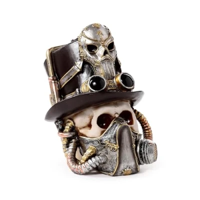 Puckator Steampunk Style Skull with Gas Mask & Top Hat Cute Room Decor Aesthetic Feng Shui Meditation Accessories Garden Ornaments Shelf Desk Decorations Mindfulness Home Gifts Statues