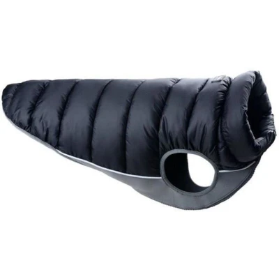 Reversible dog coat, made of neoprene and fleece, providing warmth and comfort. Waterproof and windproof, it protects your pet from snow and water. Available in black and gray, with a double-sided zipper for interchangeable style.