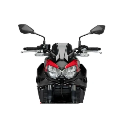 Designed in Barcelona with the most innovative technologies, the new Naked front spoiler is made of 3mm thick matte black ABS, a material highly resistant to any type of impact, which gives your motorcycle an aggressive and elegant look that you are looking for. In the aerodynamic aspect, the new Naked front spoiler from Puig channels the air that reaches the radiator frontally and, thanks to its shapes, provides almost 2kg of downforce on the front wheel, generating, in turn, an anti-wheelie effect; anti-shimmie effect (greater stability at high speeds), more poise when braking and greater stability when changing direction. The assembly will be a simple and fast task, without the need for specific mechanical knowledg, since it is fixed to the vehicle through a 3 mm thick metal support. You will be able to know all the characteristics and benefits of the new Naked front spoiler from Puig with the aerodynamic study that accompanies the product. Check compatibility with your motorcycle in the Product Description section.