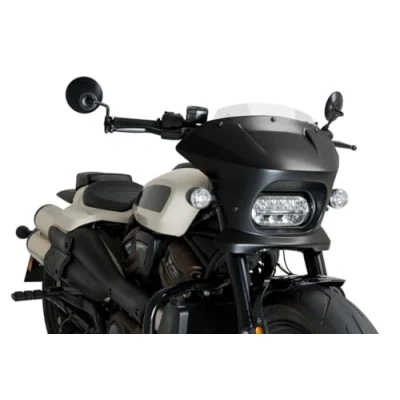 Made specifically for the Harley-Davidson Sportster S, its Batwing style design, inspired by the sharp snout of white sharks, sports a very marked horizontal line that lights a practically flat upper area that integrates with the tank and the set of the motorcycle; therefore, it is for those riders who seek to combine aesthetics and functionality in equal parts With the installation of the Fury semi fairing, the amount of air that would impact the rider is reduced, diverting the air cleanly to the sides, avoiding annoying turbulence, which considerably increases riding comfort and reduces fatigue Made with quality materials, ABS plastic and 4 mm thick CN acrylic material, it is a very resistant and rigid piece as well as light with resistance to impacts and aging; it has approval by the German TUV The shell is available in matte black or glossy black and can be combined with the Sport visor, more aggressive and minimalist, and the Touring visor, er to provide greater aerodynamic protection, available in clear, smoked, dark smoked and black; to be able to choose the combination that best suits your style Check compatibility with your motorcycle in the Product Description section