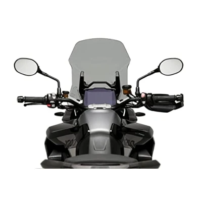 Touring screens, developed by Puig in Barcelona, are designed with the objective to aerodynamically protect the rider without affecting his/her field vision. In addition, these screens fit perfectly with the adventure style and aesthetics of the trail models thanks to their wide range of colors and different sizes These Touring screens are manufactured using the most advanced technologies, using 4mm thick acrylic material, with UV protection and with a 2mm rounded edge. This finish gives it a more elegant touch and offers greater security, fulfilling with the regulations of the German TÜV The assembly of this screen follows a process that can be done without having to ask for a mechanic thanks to its simple and intuitive adaptation The package also includes the aerodynamic studies that have emerged from comparing the Puig screen with the original in a virtual wind tunnel Check compatibility with your motorcycle in the PDF section as shown in the image.