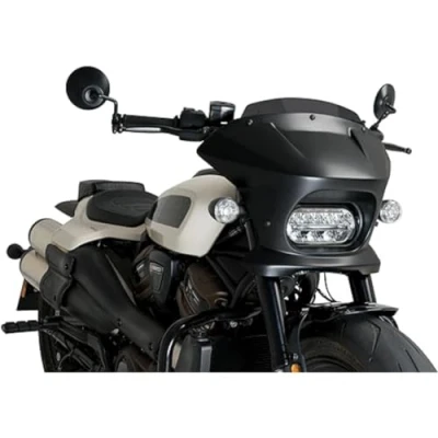 Made specifically for the Harley-Davidson Sportster S, its Batwing style design, inspired by the sharp snout of white sharks, sports a very marked horizontal line that lights a practically flat upper area that integrates with the tank and the set of the motorcycle; therefore, it is for those riders who seek to combine aesthetics and functionality in equal parts With the installation of the Fury semi fairing, the amount of air that would impact the rider is reduced, diverting the air cleanly to the sides, avoiding annoying turbulence, which considerably increases riding comfort and reduces fatigue Made with quality materials, ABS plastic and 4 mm thick CN acrylic material, it is a very resistant and rigid piece as well as light with resistance to impacts and aging; it has approval by the German TUV The shell is available in matte black or glossy black and can be combined with the Sport visor, more aggressive and minimalist, and the Touring visor, er to provide greater aerodynamic protection, available in clear, smoked, dark smoked and black; to be able to choose the combination that best suits your style Check compatibility with your motorcycle in the Product Description section