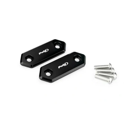 The smallest elements can make a difference The covers for the Puig rear-view mirror will achieve a clean and well-finished image in case of removing the mirrors to enter the circuit The pieces are made from an aluminum block anodized in black, a tone that matches any sporty model Its design is specially designed to not stand out on the fairing, maintaining its shape and structural functionality Check compatibility with your motorcycle in the product description section