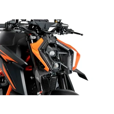 Optimize the aerodynamics and sporty design of your motorcycle with the Puig Naked front winglet, adding an aggressive look and improving stability in all riding conditions. Manufactured in 3mm matte black ABS, a highly impact-resistant material capable of withstanding extreme conditions, ensuring durability, lightness, and perfect integration with the motorcycle’s design. Its innovative design generates up to 2 kg of downforce on the front wheel, improving braking stability, reducing the wheelie and shimmie effect, and providing greater safety in corners and straights. Simple installation without modifications to the motorcycle, secured with a 3 mm thick metal support. Includes detailed instructions and a video tutorial for easy assembly without requiring mechanical knowledge. Compatible bikes: KTM 1390 SUPER DUKE R 2024, 2025; KTM 1390 SUPER DUKE R EVO 2024, 2025.