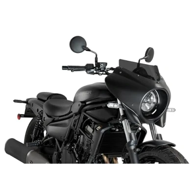 Its design with simple and rounded lines combines perfectly with many custom and cruiser motorcycle models, providing an exclusive personalized look and significantly improving the rider's aerodynamic protection. The Mirage semi-fairing is a very universal accessory since its design easily adapts to motorcycles with a round headlight, covering the front part around the headlight, protecting it from dirt and small impacts. It allows installing two different screens, the Sport, more aggressive and minimalist, and the Touring screen that provides more aerodynamic protection. The screens are available in clear, light smoke and dark smoke to match the Mirage semi-fairing which is available in a matte black or gloss black finish. Check compatibility with your motorcycle in the Product Description section.