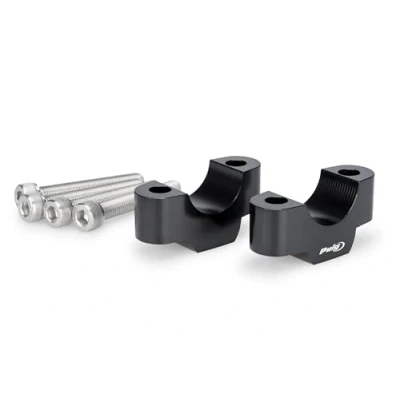 Puig 22037N Risers, Hi Tech Parts handlebar risers with 20mm height and Ø 29.2 mm, CNC machined in anodized aluminum to improve ergonomics style while riding your motorcycle, Black