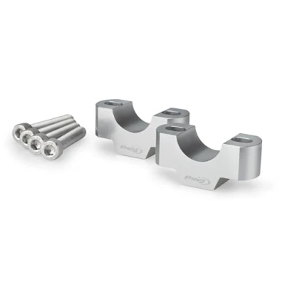 Puig 22115P Handlebar risers for 20 mm elevation in CNC machined aluminum with anodized finish, Hi Tech Parts design to enhance ergonomics and comfort, Silver