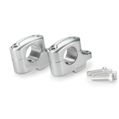 Universal Puig Pullback Risers that raise the handlebar 25 mm and bring it 16 mm closer to the rider, improving riding posture to reduce fatigue and increase comfort on long journeys or daily riding without compromising control or stability. Made from high-quality CNC-machined aluminum, these risers feature a silver anodized finish that ensures wear resistance, lightness, and an elegant look; a sleek and modern design that adds personality and style to the handlebar of any motorcycle. Made from high-quality CNC-machined aluminum, these risers feature a silver anodized finish that ensures wear resistance, lightness, and an elegant look; a sleek and modern design that adds personality and style to the handlebar of any motorcycle. Its universal design with a diameter of 29.2 mm and height of 20 mm allows easy installation on most motorcycles on the market; a visible component that combines functionality with aesthetics, adding a robust and sophisticated touch to the handlebar setup. Compatible motorcycles: BMW S1000 XR 2024; BMW S1000 XR 2025.