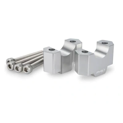Puig 22183P Risers, Hi Tech Parts handlebar risers with 20mm height, CNC machined in anodized aluminum, improve riding posture style, Silver