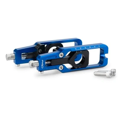 Puig 22204A Chain Tensioner; precise and sporty design; made of machined anodized aluminum; easy adjustment with visible markings; perfect aesthetic integration swingarm, Blue