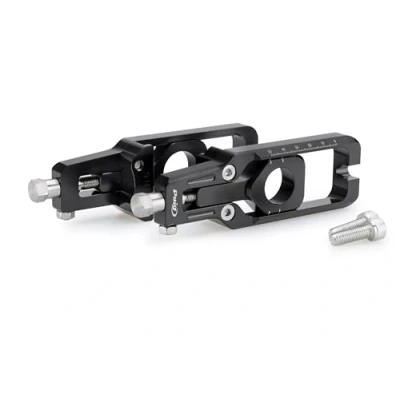 Puig 22204N Chain Tensioner; precise and sporty design; made of machined anodized aluminum; easy adjustment with visible markings; perfect aesthetic integration swingarm, Black
