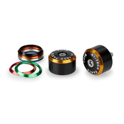 Set of handlebar weights Puig 22289N in black, made from high-quality machined aluminum; provide lightness, durability, and a modern, attractive design that enhances aesthetics and balance during riding. Composed of three parts: central body, interchangeable ring available in 6 colors (blue, black, gold, silver, orange, red), and cap with Puig Hi-Tech Parts inscription; facilitates customization and the perfect match with the motorcycle’s style. Quick and easy installation by replacing the original handlebar weights without the need for modifications; universal and specific models available to ensure a perfect fit and maximum functionality on different motorcycles. Reduces vibrations transmitted to the handlebar, increasing stability and comfort during riding, especially on long journeys and at high speeds; also adds a personalized and sporty touch that stands out visually. Compatible motorcycles: YAMAHA YZF-R1 2015-2025; YZF-R1 RACE 2024-2025; YZF-R1M 2016-2025; YZF-R6 2017-2020; YZF-R6 RACE 2022-2024; YZF-R7 2022-2025.