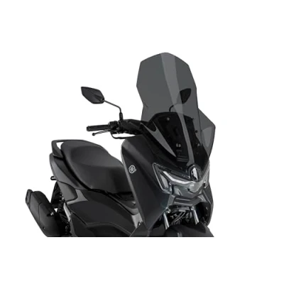 The Puig 22407F V-Tech Line Touring screen in dark smoke offers exceptional aerodynamic protection; its design channels airflow and reduces turbulence, providing greater stability and comfort during urban or daily riding. Made of high-quality 4 mm thick acrylic, it guarantees outstanding resistance to impact and ultraviolet rays; its rounded Ø4 mm edges comply with European regulations and TÜV and KBA safety standards. With dimensions of 700 x 520 mm, it is 270 mm taller than the original screen; its large surface effectively covers the torso, arms, and hands, protecting the rider from wind, rain, and other elements without reducing visibility. Designed and manufactured in Barcelona with Puig’s racing experience; simple installation with no modifications required; features an elegant and functional design that harmonizes with the headlight and vehicle lines, improving aesthetics and performance. Compatible motorcycles: YAMAHA NMAX 125 2025; YAMAHA NMAX 125 TECH MAX 2025