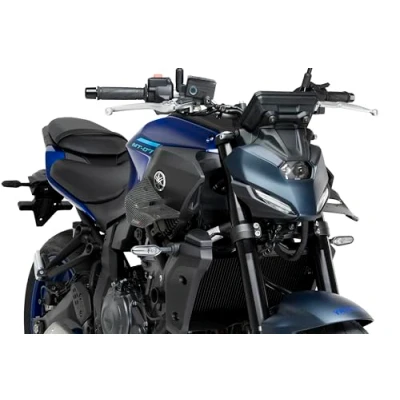 Puig’s D12 winglets prioritize aerodynamics on high-performance motorcycles with an optimized side design that improves airflow, increases front-end stability and enhances Racing style without altering structural integrity. The dual-wing system, combined with a lateral winglet, directs airflow upward and generates up to 4.4 kg of downforce; this improves anti-shimmy stability, reduces wheelie behavior and enhances performance under hard braking. Manufactured in Barcelona with competition engineering, using 4 mm CN acrylic with rounded edges and 2 mm textured black metal supports that guarantee rigidity, stability, durability and optimal performance. Easy installation without drilling; no mechanical knowledge required. Includes clear instructions and online content that enable quick, precise and clean assembly, allowing riders to take full advantage of its aerodynamic benefits from the first ride. Compatible motorcycles: YAMAHA MT-07 2025; YAMAHA MT-07 Y-AMT 2025
